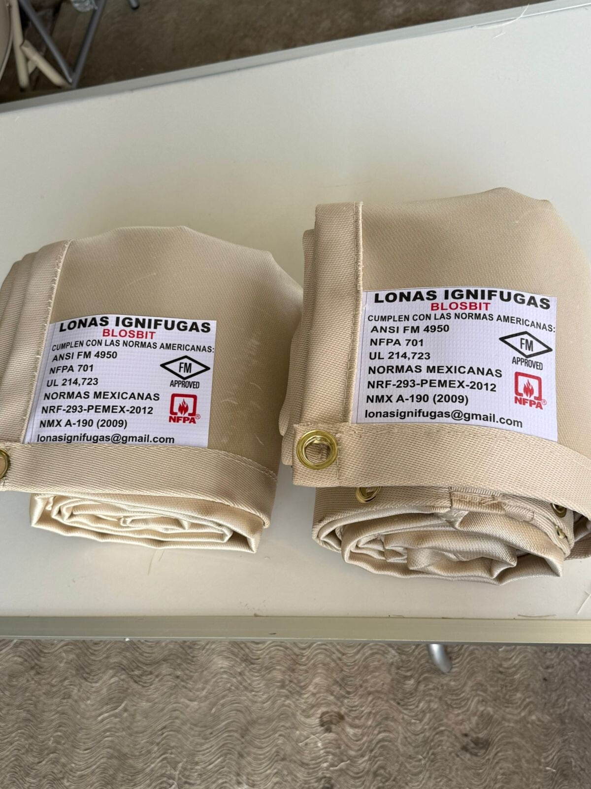 Lona Ignifuga para uso horizontal de 186x244 metros, resiste altas temperaturas, escoria de metal fundido, salpicadura y chispa de soldadura, cumple con la norma ANSI FM 4950 - norma NFPA 701 - norma UL 214, 723